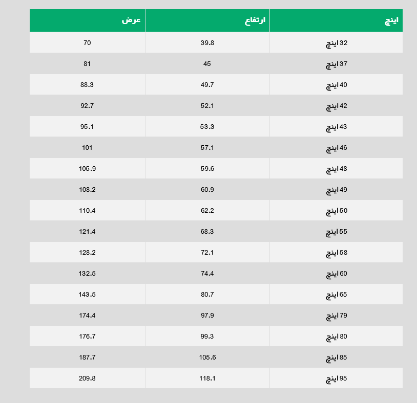 محاسبه ی اندازه ی تلویزیون به سانتی متر
